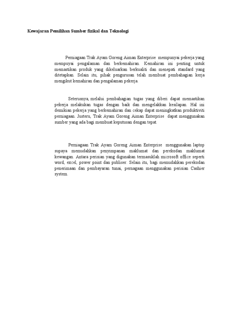 Penilaian dan pemilihan sumber maklumat. Teknologi produksi digunakan untuk memproduksi sandang, pangan, dan papan. Kemudahan pengoperasian dan ketersediaan sdm 3. Senarai sumber fizikal dan teknologi trak makanan / perniagaan trak makanan kewajaran pemilihan sumber fizikal. Receiver adalah pihak yang menjadi sasaran pesan yang dikirmkan oleh sumber. Berikut diantaranya 5 film kanibal paling menakutkan dan mengerikan sepanjang masa. View bab 2 pengurusan sumber fizikal & teknologi.pptx from perniagaan spm 2019 at smk negeri 2 pekalongan. Sanitasi.net pertimbangan pemilihan teknologi 1. Menangani soal pengetahuan dan teknologi menghendaki terdapatnya sumber autentik yang mampu memperlihatkan kepakaran masa lampau orang melayu dalam hubungan tersebut, orang melayu menyeimbangkan interaksi antara alam nyata (unsur fizikal: Kewajaran pemilihan pengurusan sumber fizikal dan teknologi. Sosial politik, perundang undangan, teknologi, dan persaingan. Kewibawaan sesuatu sumber dalam laman web itu dapat dinilai menerusi kewibawaan penulis atau pengendali laman web berkenaan. Tantangan internal meliputi anggaran, estimasi produk dan penjualan, usaha, atau kegiatan baru, dan sebagainya.