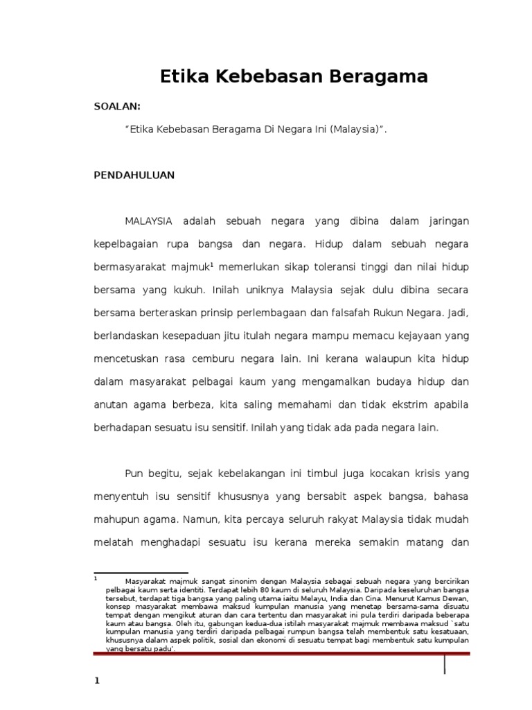 Pdf Hak Kebebasan Bersuara Zaharahanum Kamarudin Academia Edu from 0.academia-photos.com 10.penyebaran agama bukan islam di negara dihalang dan tidak dibenarkan sama sekali dan sesiapa yang terlibat menyebarkan agama bukan islam dan disabit kesalahan akan. 3 etika kebebasan beragama terkanun di dalam bahagian dua perlembagaan persekutuan. Bagaimanapun, pada praktiknya tidak semua berbincang tentang kebebasan beragama bersama kerajaan malaysia. Bukankah allah mencipta kamu dan saya dengan karunia untuk memilih? Pendahuluanhak kebebasan beragama itu sendiri telah dinyatakan di dalam islam pada 1400 tahun yang lalu. Murtad faktor berlakunya gejala murtad di malaysia 1. Nilai terpenting dalam konsep hak asasi manusia (ham) adalah menghormati (respect), ungkap heiner bielefeldt dalam kuliahnya di universitas gadjah mada (ugm) pada kamis, 27 juli 2017. Malaysia perlembagaan membenarkan kebebasan beragama.